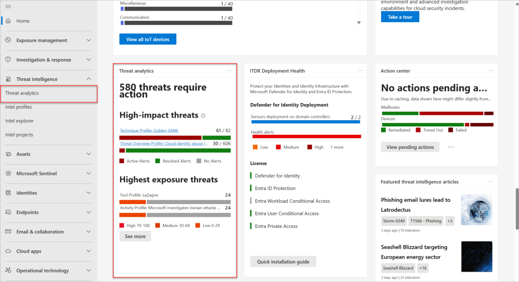 - Gebruik Threat Analytics om op de hoogte te blijven van wereldwijde uitbraken en zero-days.